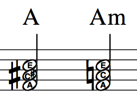 the piano keyboard. A natural sign cancels a proceeding sharp or flat as in the A major and A minor chord illustration shown above.