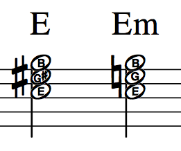 To make an E major chord an E minor chord, just lower the G# to a G natural. (see illustration below)